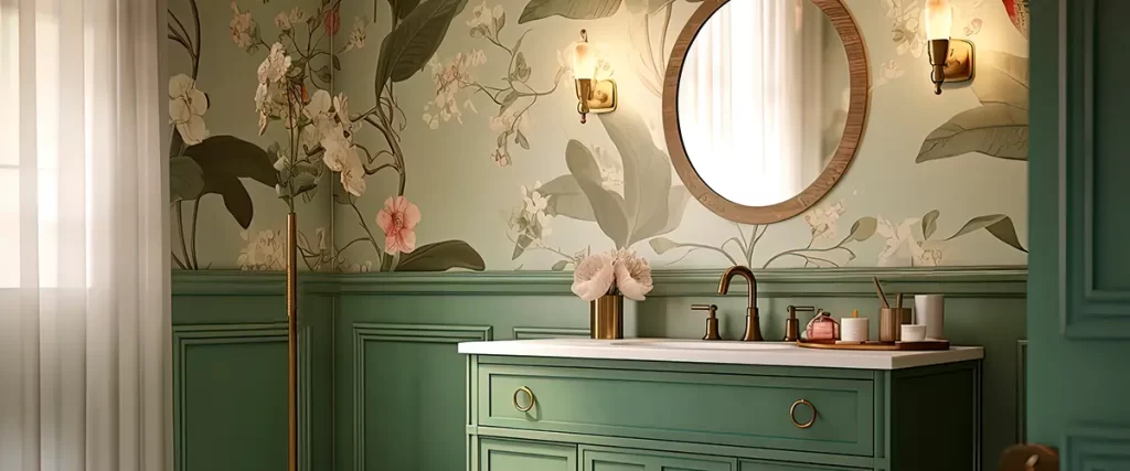 Vinyl wallpapers are perfect for these damp environments, offering durability along with easy cleaning. Choosing bold patterns or calming botanical prints adds visual interest and makes the room seem larger.